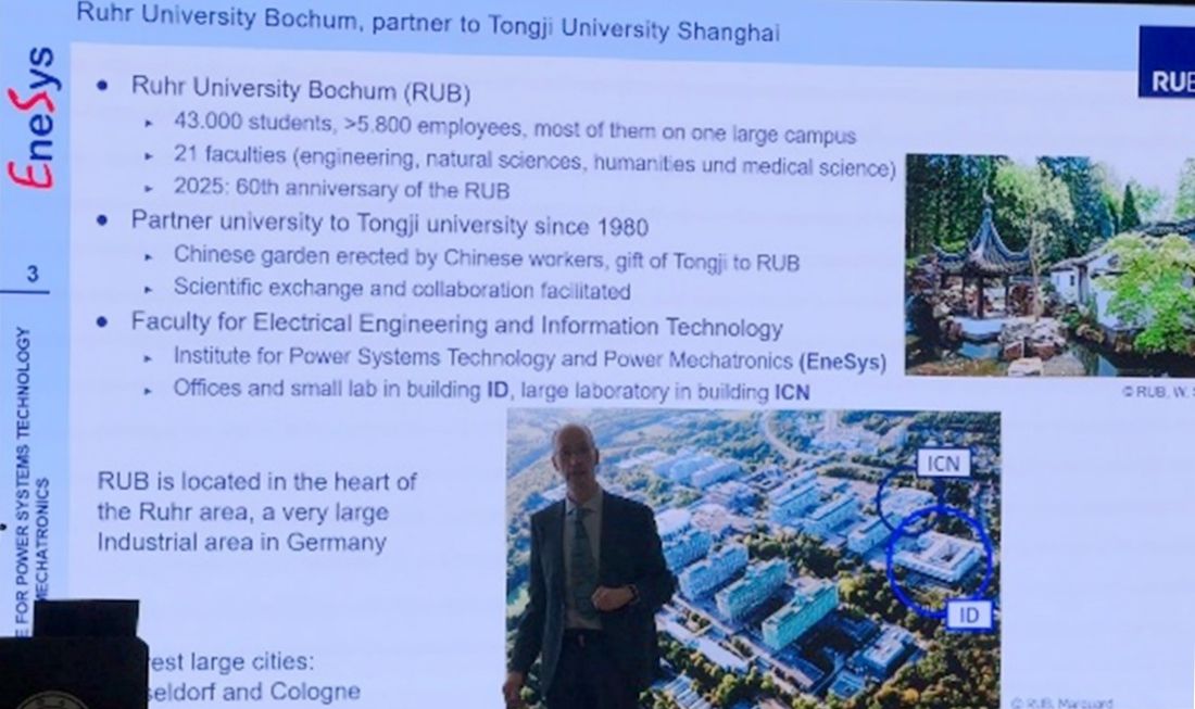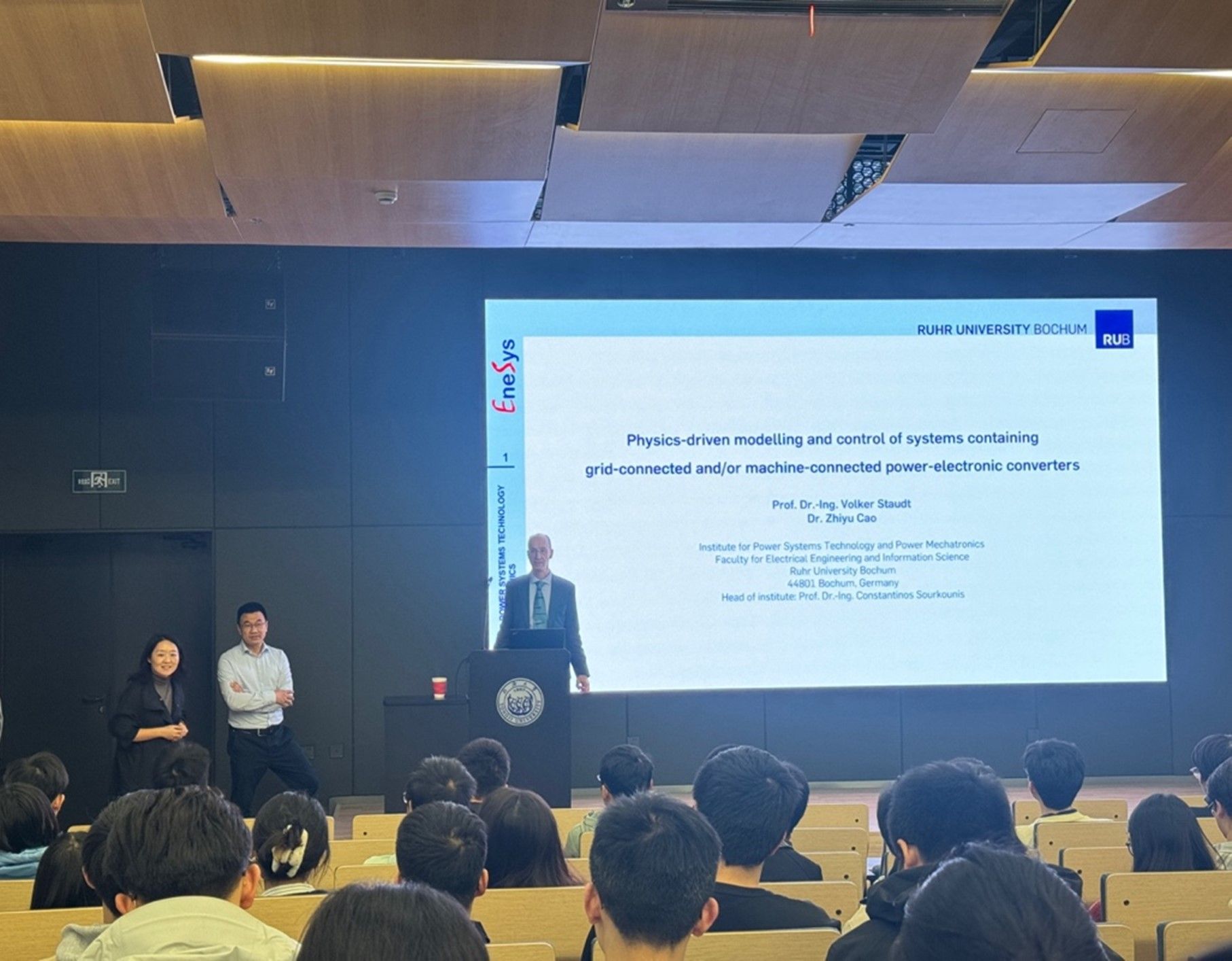 On Nov 10, 2025, the 84th Zhi Xin Forum was held in Lecture Hall 117 at the Zhixin Building, which was jointly organized by the College of Electronic and Information Engineering and Shanghai Institute of Intelligent Science and Technology of Tongji University. Prof.Volker Staudt fromRuhr-Universität Bochum, was invited to give a lecture on “Physics-driven modelling and control of systems containing grid-connected and/or machine-connected power-electronic converters”.