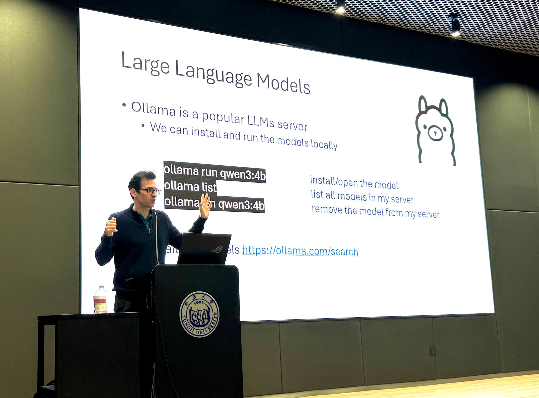 In this report, Professor Jordán explained the fundamental principles and core operating mechanisms of Large Language Models (LLMs) in a clear and concise manner. The report mainly introduced the basic knowledge about LLMs that are easy to master, and details the key principles of artificial intelligence systems.Heshared practical tips for deploying and running models locally, helping attending teachers and students understand the underlying architecture and behavioral patterns of modern AI models. In addition, Professor Jordán also highlighted the concept of AI Agents and demonstrated how to quickly create and configure these agents using a no code platform. These intelligent agents demonstrate strong automation potential and can seamlessly integrate into daily tasks and business processes.